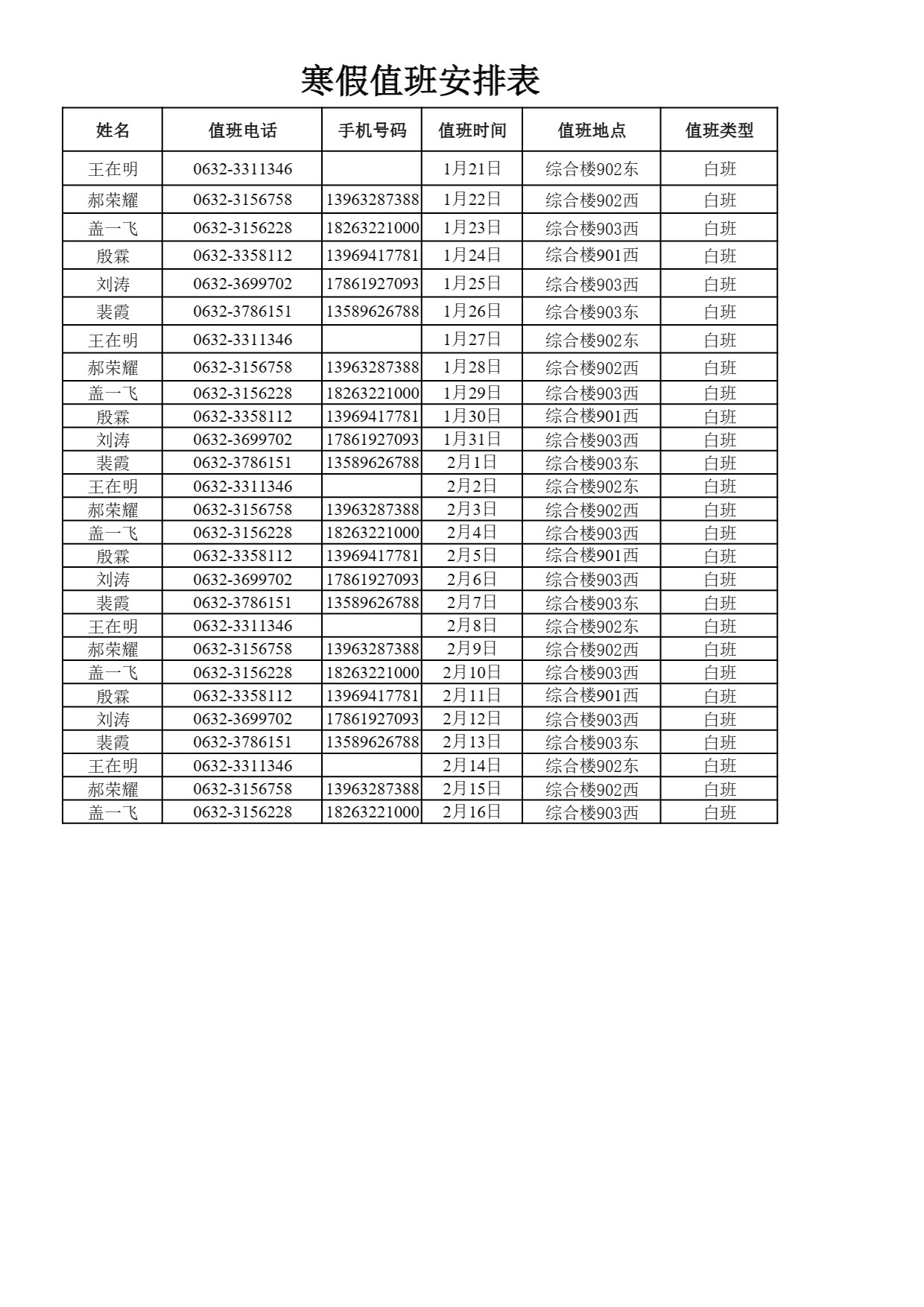 2025年寒假值班安排