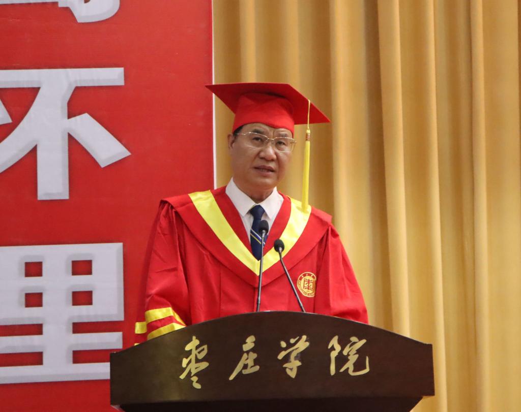 董事长李文喜作了题为《激扬青春梦想 展现时代担当》的毕业典礼致辞,代表公司对顺利完成学业的2021届毕业生表示热烈祝贺,并送上三点嘱托和祝福:第一,期待同学们涵养家国情怀,勇担时代使命。热爱祖国、报效祖国同样是每个枣院人的心之所系、情之所归。希望同学们在今后的人生旅程中,能够始终胸怀“国之大者”,始终把自身的“小我”,融入到祖国的“大我”、人民的“大我”之中,让青春在磨砺中出彩、在奋斗中升华,为新时代党和国家事业发展贡献智慧和青春力量。第二,期待同学们勤于修身养德,锤炼过硬本领。完善人格、涵养道德是我们一生必须追寻的目标。同学们唯有保持积极的人生态度,培养良好的道德情操,持续不断地努力学习,才能练就自我发展的强大“内核”、构造自身“硬件系统”,成为新时代国家和民族可信赖、可依靠的“硬核”青年。第三,期待同学们永葆创新精神,争做开路先锋。创新是社会发展的第一动力和永恒主题,也将是同学们建功立业的根本途径。希望同学们今后无论是继续深造还是投身工作,都能始终褒有“敢为天下先”的锐气和甘坐“冷板凳”的定力,把激昂的创新创业梦融入伟大的中国梦,勇攀科技高峰,勇闯科技创新“无人区”,争做创新报国的引领者和实干家。