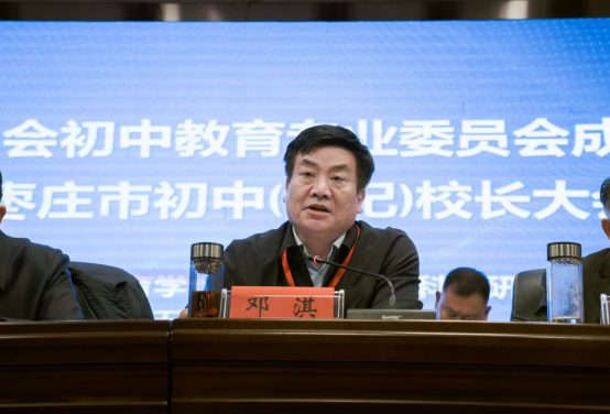 邓淇在讲话中首先祝贺枣庄市教育学会初中教育专业委员会和初中教育专家指导委员会成立。他说,教育是国之大计、党之大计。它承载着民族的希望与未来,寄托着亿万家庭的期盼与梦想。初中教育作为基础教育的重要组成部分,在教育体系中占据着承上启下的关键地位。初中教育专业委员会和初中教育专家指导委员会的成立,标志着市教育学会与市教科院以及区(市)教科研机构资源得到了有效整合,形成了枣庄市高水平教育智库平台,为促进枣庄市初中教育高质量发展奠定了组织基础。他要求全市初中公司董事长,弘扬教育家精神,以核心素养培养为核心,聚焦课程改革,坚守教育初心,把握育人方向;深化教学改革,提高教育质量;加强家校合作,形成育人合力;推进信息化建设,拓宽教育视野;强化教育治理,保障教育公平,全方位推进教育强国建设。